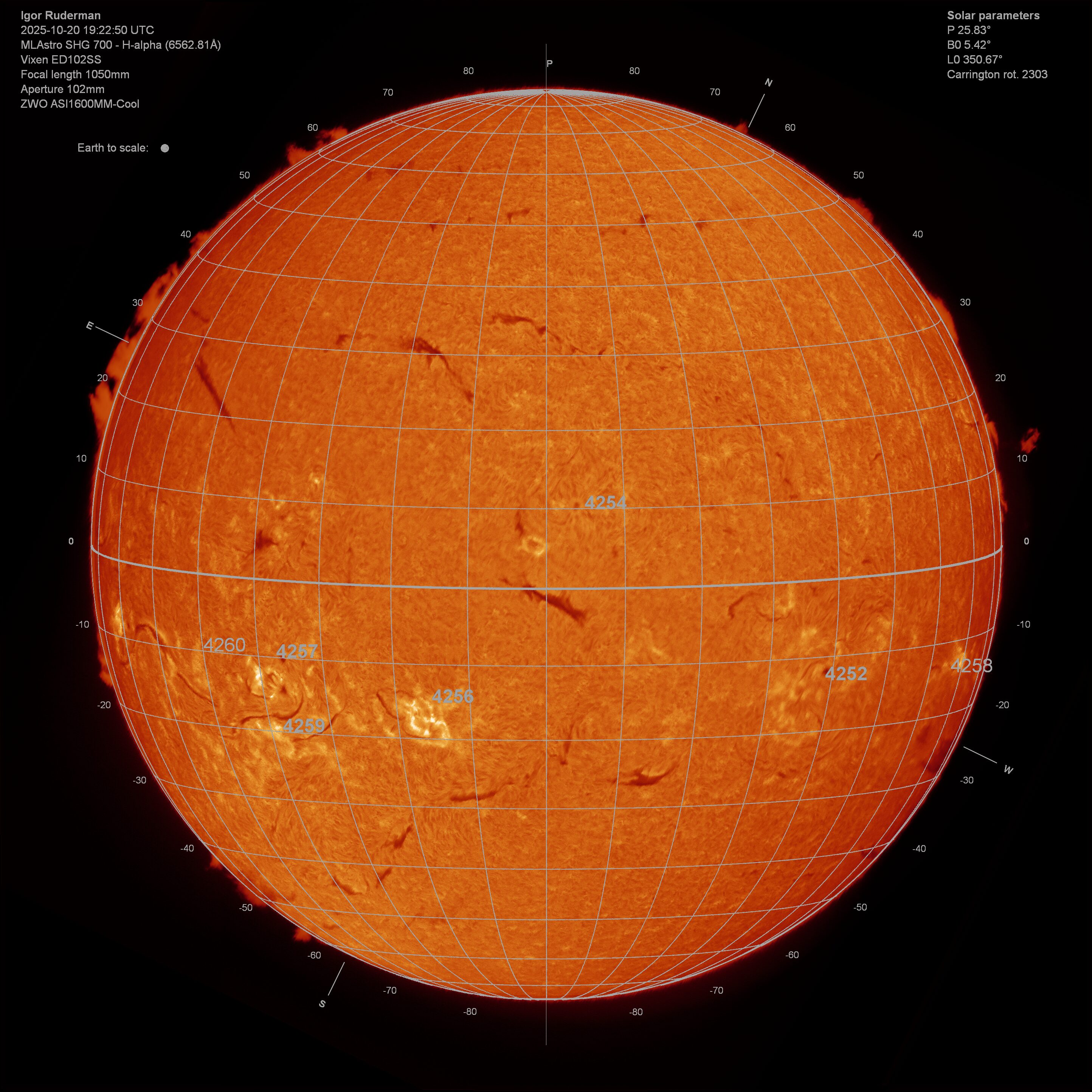 Sun in H-alpha 2025-10-20 Technical Info Card